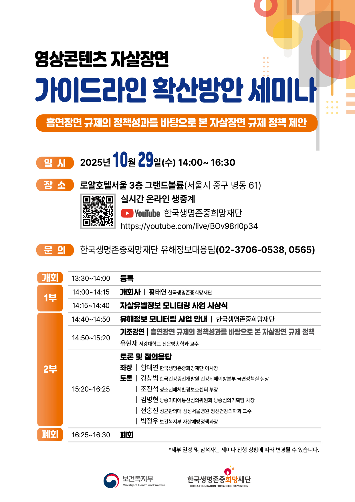 2025년 영상콘텐츠 자살장면 가이드라인 확산 방안 세미나 안내